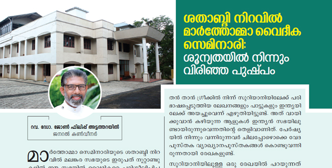ശതാബ്ദി നിറവിൽ മാർത്തോമ്മാ വൈദീക സെമിനാരി: ശൂന്യതയിൽ നിന്നും വിരിഞ്ഞ പുഷ്പം